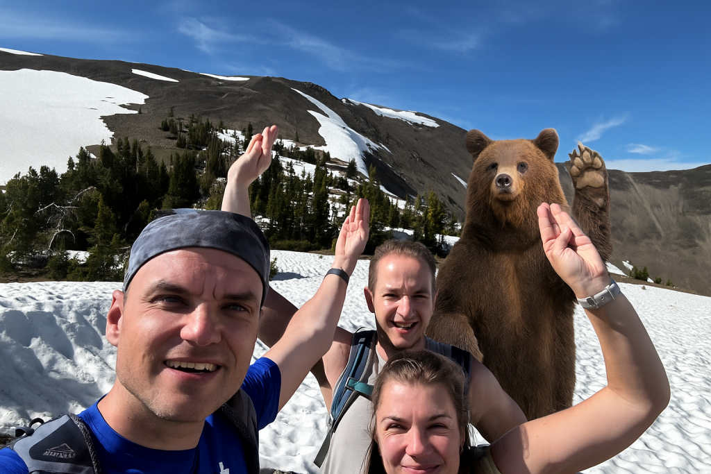 Naja… neben den oben beschriebenen Aktivitäten hab ich Chatty (ChatGPT) bemüht unsere bisherigen Fotos etwas anzupassen und aufzupeppen. Es ist schon gut in der aktuellen Welt zu leben, wo vieles nur noch mit Fingerschnippen und künstlicher Intelligenz geht…