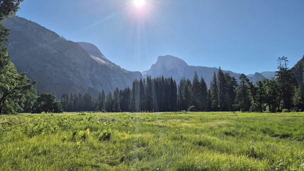 Inzwischen haben wir geduscht, Nudeln zum Abendbrot gehabt und ich hab mein Fresskoma von 19 bis 2030 Uhr beseitigt. Meine Füße tun kaum noch weh und ich hab die Zeit und Muße zum tippen gefunden. Pummelfee Modus ist auch schon wieder inaktiv, also alles gut. Der Tag Overall war anstrengend as fuck aber wert. Das oben auf dem Eagel Peak ist der beste Blick ins Tal und auf den Half Dome so viel ist mal Fakt. Das wir den El Capitan geskipped haben… egal, den brauch keiner 😄 also… lasst uns den Tag nach all der Qual positiv beenden und die Sonne „praisen“