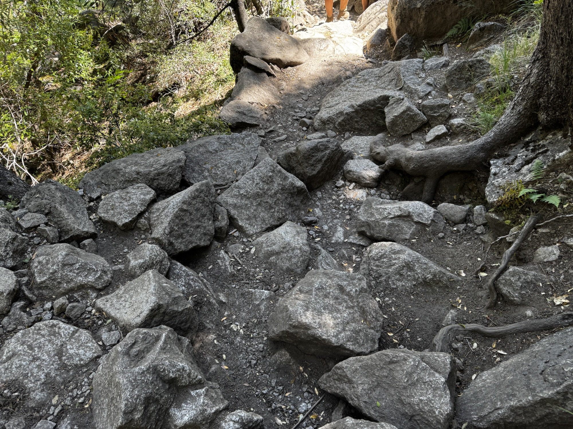 Irgendwann zwischen dem 43. und 45. abschnitt voller Stufen kommen wir den Upper Falls näher. Tatsächlich sind auf dem Weg viele Touris mit nicht Wander Equipment zu sehen, die einfach nur den Trail hoch zu den Uppers gehen ohne vernünftige Schuhe, ohne ausreichend Wasser und ohne passende Kondition. Leider sieht man viele die den Trail unterschätzen und man an den Serpentinen hoch gefühlt bei jeder Wendung ein Sauerstoffzelt aufbauen müsste. Zugegeben ist die Sonne am Vormittag auch gnadenlos und entlang des Weges ist jeder Schattenplatz belegt, sodass man schnell reagieren muss, wenn man wirklich mal einen freien Platz findet zum Pause machen.