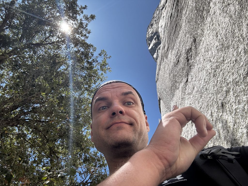 Uns wird bewusst, wieso uns alles wehtut. Egal das Ziel für heute: Füße knutschen. Also gehen wir weiter zum El Cap, finden auch den Weg, wo die Kletterer immer anfangen und 99% der Touristen nicht hingehen. Es ist ein kleiner Anstieg nicht der Rede wert, aber als man dann endlich am Fuße steht, kommt man sich einmal mehr super klein vor. Insbesondere bekommt man Ehrfurcht vor der Leistung von Alex Honnold der die Wand ohne Seil in unter 4h hoch gekraxelt ist. Der Film dazu „Free Solo“ gibts übrigens auf Disney+ wer kein Disney hat einfach mal auf YouTube nach Free Solo suchen und nasse Hände bekommen…