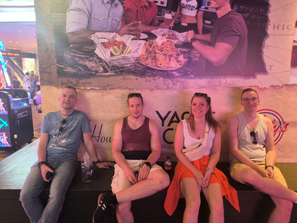 Als wir mit dem Uber hin sind, wussten wir nicht worauf wir uns einlassen. Alles was wir wussten: Das ist Unterhaltung! Okay man kann sagen, man ist auf gut Glück hin… als wir ausm Uber raus sind: 70 Grad die Frisur sitzt, Schweiß verdunstet sofort auf der Haut. Richtig wilder Tag. Wir sind also rein in Halle 1 (von 4) und waren umhüllt von Dunkelheit, neon Licht, LEDs in allen Farben, Lasern und Licht Scannern. Das sah wirklich beeindruckend aus. Aber was ist das hier zur Hölle?!? Nun kurz: ein NerdParadies, wenn man das nötige Kleingeld mitbringt. 225$ um genau zu sein pro Nase… im Grunde war es eine riesige Halle mit mehreren MiniGames links und rechts vorwiegend mit VR/AR Brillen die dich in eine Andere Welt bringen sollten. Von Shooter bis Sport Games alles dabei. Viel zu sehen und für den obigen Spottpreis darf man über 4 Tage auch überall rein.