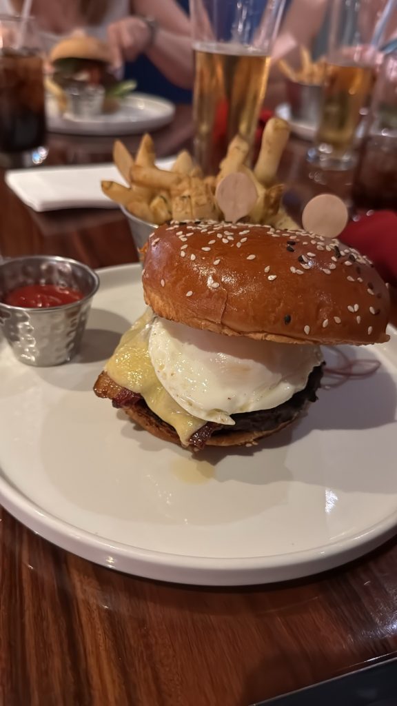Gegen 10 Uhr waren sie alle wieder vereint. Ich hatte meine ersten 12.000 Schritte für heute schon runter und die Temperatur betrug inzwischen locker 30 Grad. Eigentlich wollten wir nochmal runter zum Dannys gehen, um zu frühstücken aber da die Temperatur bei 35 Grad stand und auf unserer Liste es noch eine Burger-Laden Empfehlung zum Testen gab… gabs zum „Frühstück“ eben Burger und Pommes – na und??!?! Gut wir haben beschlossen damit zwei Mahlzeiten zusammenzulegen also isses eher ein Brunch, allerdings kann der Preis für zwei locker mithalten. Einmal Gordon Remsey Burger für 185 USD bitte, danke! Okay klingt viel aber das war für alle zusammen und der Geschmack war wirklich Bombe! Bester Burger bisher!