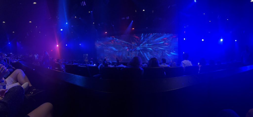 Die blauen Männer sind schnell gefunden, unsere Plätze auch. Die Plätze sind gut – Zentral mit bester Sicht nach vorne. Hinter uns eine Familie mit drei Kindern 5,3 und 1(!). Die Show geht los. Ramona Stefan und ich hatten diese ja schonmal in Berlin gesehen. Hendrik die BlueGroup Jungfrau und sichtlich hüpet auf die Show weil er wohl schon viel Gutes gehört hat. Die In Vegas war schon sehr identisch mit dem was wir schonmal gesehen haben. Einzelne Elemente der Show sind wiedererkannt, aber das ist egal. Sie soll ja unterhalten und wie sie das tut. Direkt zu Beginn der Beat und die wummernden Bässe bei der Lautstärke lassen alles erbeben. Ich liebs auf Anhieb – holy wie geil das ist.